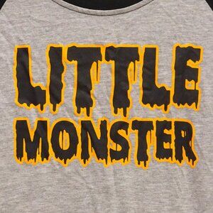 10 Threads Tee. “Little Monster” Front Graphic. Halloween. 3/4 Sleeve. Gray Body and Black Raglan Sleeves. Round Neck. Cotton Blend. Kids Size 10. Great Used Condition.