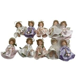 10 Vintage 4” Porcelain Dolls Angels Ornament Christmas Xmas Tree