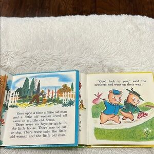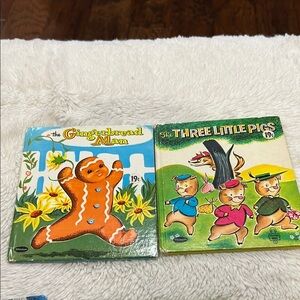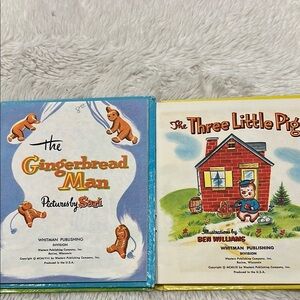 Delight your child with this collection of classic children's storybooks. Featuring vibrant illustrations and timeless tales, these books are perfect for bedtime reading. Includes stories like 'Raggedy Ann' and 'Noah's Ark'. Gingerbread band three little pigs Tom and Jerry, big move, the three bears. In good vintage condition the bottom to have some tape on the binding and the little toot was a library book.