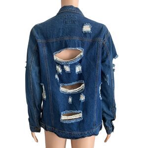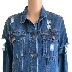 #10 Wax Jeans Denim Jacket Womens Medium Dark Wash Distressed