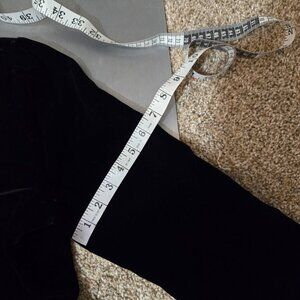 Measurements in pics, no stretch, free hip. If you're willing to redo what I think is an aftermarket hem job you could get another 3+ out of the green skirt length.