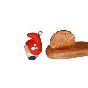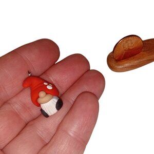 One handmade, miniature, clay gnome charm