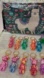 Set of colorful bear bag charms/keychains in organza bags. Includes ombré, orange, blue, green, pink, and purple bears. Use for party favors, present decorations, give aways.