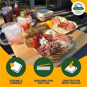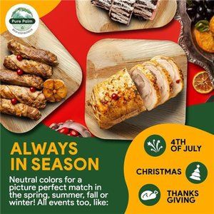 🧿Durable & Highly Versatile: microwave, freezer, fridge & even oven safe! These disposable palm leaf plates can take up to 340F in the oven. Great for fancy sushi plates, baked goods, dessert plate plates for everything! Birthdays, Weddings, Parties, Rustic Winter Parties. You get the look of wooden plates for a fraction of the cost. Good for every day use too!