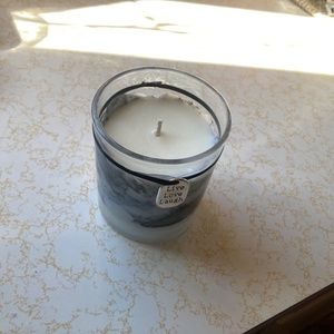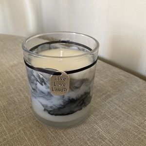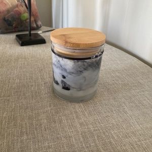 This candle is a black marble candle with an orange citrus scent. It is a 10 ounce single wick. The size of the jar is approximately 3 1/2 inches high and includes a bamboo lid and motivational charm. I make all of my candles with 100%, soy wax and cotton braided wicks, I can create many different colors, scents and charm combinations!