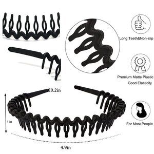 Features: These slim black headbands are made of durable, elastic plastic with a smooth matte finish. The tooth-shaped design with non-slip bumps keeps hair in place comfortably, whether you’re at work, school, or out and about. The skinny profile adds a touch of vintage flair while being super practical.
