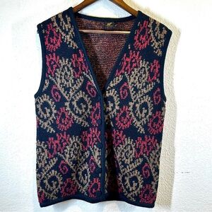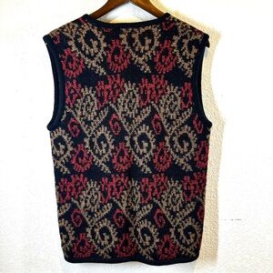 100% Alpaca Wool Sweater Vest Women Size M Red Paisley Knit Grannycore Peru Made