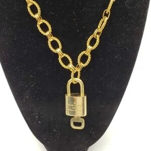 100% Auth Louis Vuitton Lock & Key with Gold Plated Gold Chain Necklace