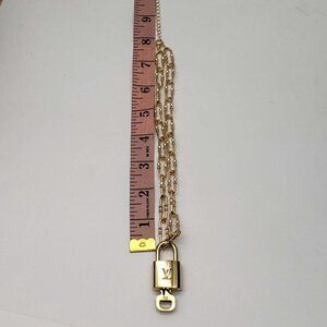 NOTE: The chain is a fashion gold plated, not Louis Vuitton original chain. The lock and key is original Louis Vuitton, which can be used for locking bags, decorative, key charm, bracelet, and necklaces.