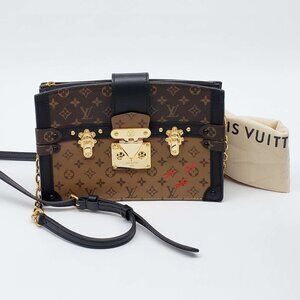 100% Auth Louis Vuitton Trunk Brown Monogram Canvas Shoulder Bag 1530-082224