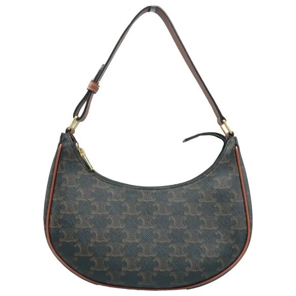 100% Authentic CELINE Triomphe Grey Canvas Shoulder Bag 2033-082524