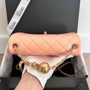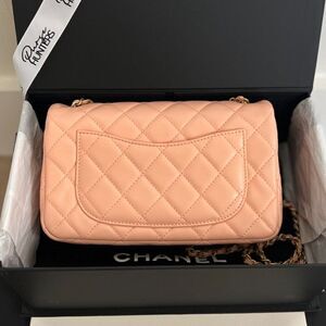 100% Authentic CHANEL Mini Rectangular in Salmon Pink Lambskin with GHW