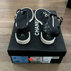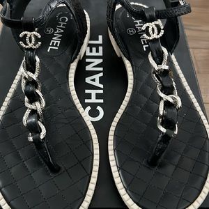 100% Authentic Chanel Leather Sandals with Chain Design Size 38.5