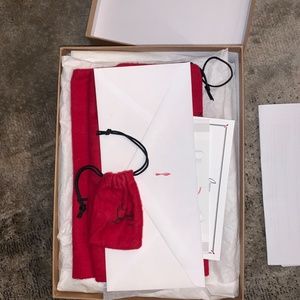 Includes: 2 dustbags, heel replacements, original box and tissue and thank you cards, original purchase receipt