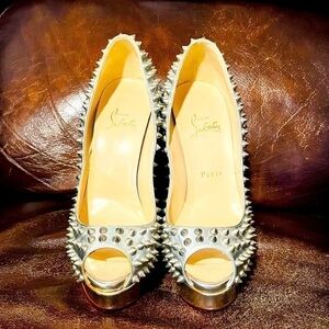 Presenting- 100% Authentic Christian Louboutin “Specchio” Lady Peep spikes. EU 38.5 140mm