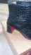 Step out in style with these elegant black croc-embossed ankle boots. Perfect for any occasion, these boots offer a chic and sophisticated look. The sleek design and comfortable fit make them a must-have addition to your wardrobe. These are 100% authentic and only worn twice. There is a clear protective cover on the red bottom to preserve the color. They are a 38 1/2 and fit true to size. They do not come with the box, only the dust bag. Please feel free to ask any questions :)
