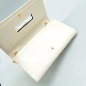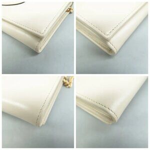 100% Authentic GUCCI Horsebit 1955 Chain Wallet White Leather Shoulder Bag