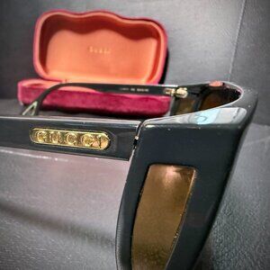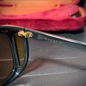 100% Authentic Gucci shield sunglasses in black acetate with rosey lenses. In excellent condition only worn a few times.