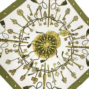 100% Authentic HERMES Carre 90 Cream Khaki Multi Scarf 225-12124