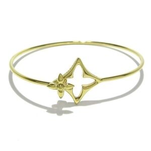 100% Authentic LOUIS VUITTON Rigid Flower Gram Gold Bracelet 447-032724