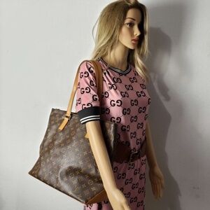 100% Authentic Louis Vuitton Cabas Mezzo Browns Monogram Tote Bag #0695