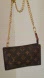 Chic Louis Vuitton pouch with signature monogram. Features a gold chain accent.