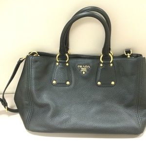 100% Authentic PRADA VITELLO DAINO NERO PEBBLED LE