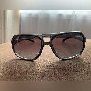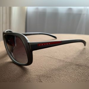 A superb vintage pair of copper brown Prada SPS 06L Unisex pilot sunglasses in their case.