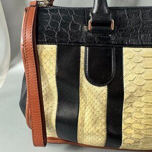 100% Authentic Proenza Schouler Black Leather Yellow Python Skin Satchel Bag