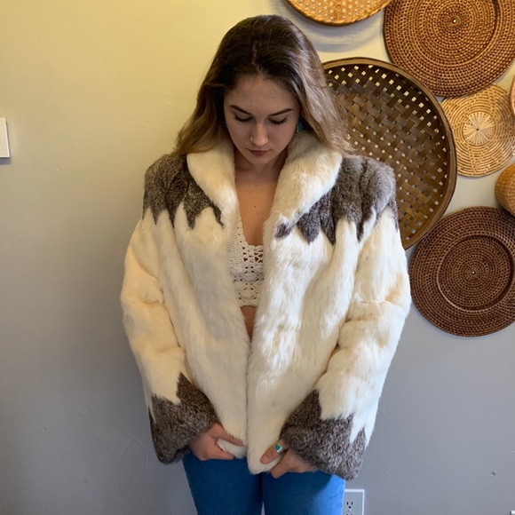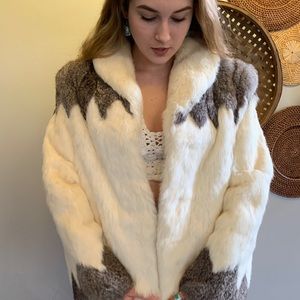 100% Authentic Rabbit fur coat!!RARE pattern!!