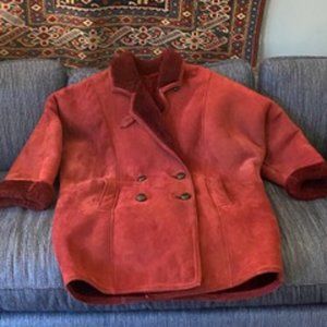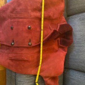 Extremely warm, cozy. Size is a relaxed 8-10. Color is a muted red, almost maroon. Measurements as follows: