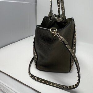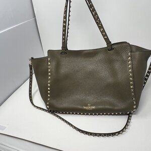 100% Authentic - VALENTINO PEBBLE LEATHER ROCKSTUD MEDIUM TRAPEZE TOTE