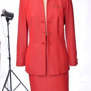 100% Authentic Vintage ESCADA Red Skirt Suit Size 40 US 10