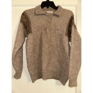 DETAILS: 100% BABY ALPACA 3 BUTTON PULL-OVER polo LONG SLEEVE SWEATER Youth XL