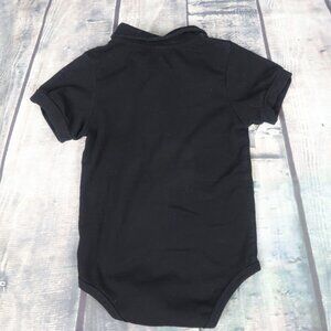 BLACK SHORT SLEEVE COLLARED ONE PIECE COTTON BODYSUIT SIZE 9 MTHS BY 100 PRE OWNED NO FLAWS