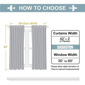 🧿SET DETAILS: Set of 2 light gray total blackout curtain panels per package. Each lined curtain measures 42 inch wide by 63 inch long with 6 silver metal grommets (1.6 inch inner diameter) on top, easy to install and slide.
