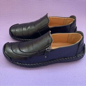 100% CAOUTCHOUC Sewn Black Leather Slip On Sport Driving Shoe Sz 43 men…