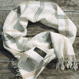 100% CASHMERE European Fringed Plaid Cream Scarf