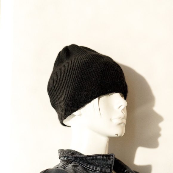 100% CASHMERE Knit Beanie, Detailed Trim, Black, Revolve
