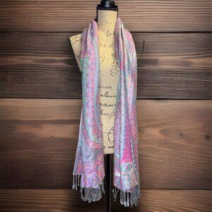 100% CASHMERE Scarf Wrap Shawl Paisley Purple Pink Travel Lightweight