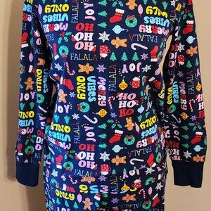 The 100% COTTON Family PJs Macys Pajama Set "Holiday Toss" in size Small is a festive and cozy pajama set perfect for the winter season. Made from lightweight cotton material, this multicolor set features a graphic print holiday theme with a crew neck pullover and matching pants. Machine washable for easy care, this Macy's brand pajama set is a comfortable choice for women looking for a holiday-inspired sleepwear option.