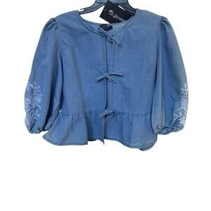 100% COTTON TIE FRONT EMBROIDERED BOHO COTTAGE BLOUSE