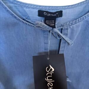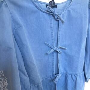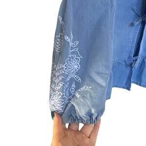 100% COTTON TIE FRONT EMBROIDERED BOHO COTTAGE BLOUSE BY STYLE HOUSE LARGE NWT