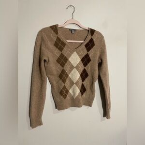 100% Cashmere Apt 9 Sweater with Argyle print Brown Beige White Tan