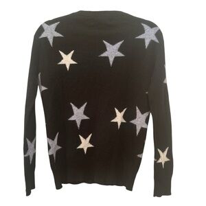 100% Cashmere Black Sweater with Star Design Sz XS Celestial Stretchy Comfy Soft