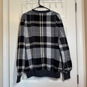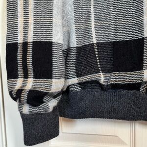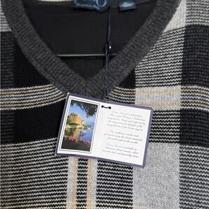 100% Cashmere Black and Gray Plaid V-Neck Sweater Size XL