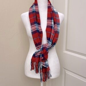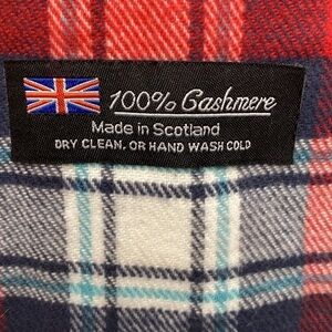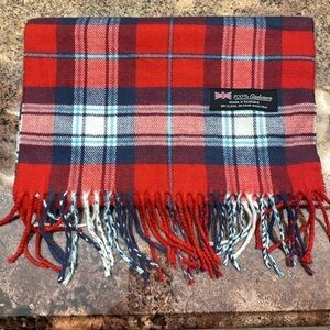 100% Cashmere Classic Red/Blue Plaid Winter Scarf Women’s Made in Scotland 72’