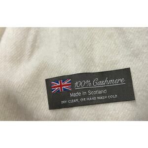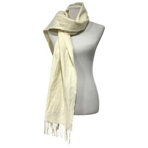 100% Cashmere Fringed Scarf Made In Scotland Solid Ivory Cream 12” W x 64”. Preowned. Excellent condition. Comes from smoke free home. Ships out fast!