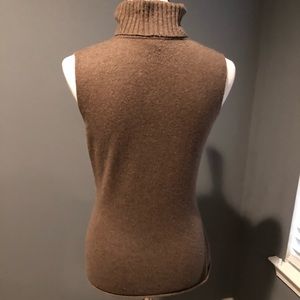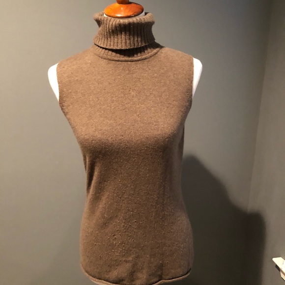 This is a sleeveless cashmere super soft sleeveless turtleneck, Brown, and size is small. If you have any questions I will happily answer them. Thank you for looking in my closet! Stay safe!