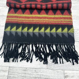 Indulge in luxurious warmth and style with this 100% Cashmere Scarf, made in Scotland. The 11.5" x 63" rectangle scarf features a beautiful assortment of colors including blue, red, black, and purple, perfect for the winter and fall seasons. The scarf is accented with fringe, adding a touch of elegance to any outfit. Made with the finest cashmere material, this scarf is both stylish and comfortable, making it a versatile accessory for any wardrobe. Dry clean or hand wash cold for easy care.